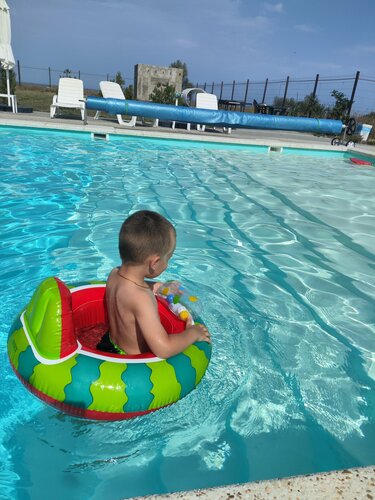 Очень душевный и уютный отель, хозяева стараются , чтобы гостям было комфортно . У нас был большой домик . Мы его забронировали еще в марте . Жили одной семьей и у каждого члена семьи была своя комната . Раз в год на отдыхе почему бы и нет ! Чисто , смена полотенец через день . Немного не повезло с морем - в июле Азовское море капризное , но проживание в этом отеле сгладило наш отдых ! Были на машине и изучали другие побережья . Просторно на территории , младшему сыну даже было где погонять мяч , чистый ухоженный бассейн и батут . Совет : здесь лучше веселей отдыхать с компанией . Завтраки готовили сами , в обед ходили в уютную столовую рядом , Вечерами делали шашлыки и играли в мафию - детям тоже было интересно . Надеюсь , приедем когда нибудь еще ! И будем советовать друзьям !