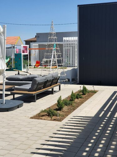 Современные, уютные домики, вокруг — идеальная чистота и ухоженность. Бассейн с прозрачной водой — отдельное удовольствие, особенно в жаркий день. Атмосфера спокойная, расслабляющая, как будто время здесь течёт по-другому.